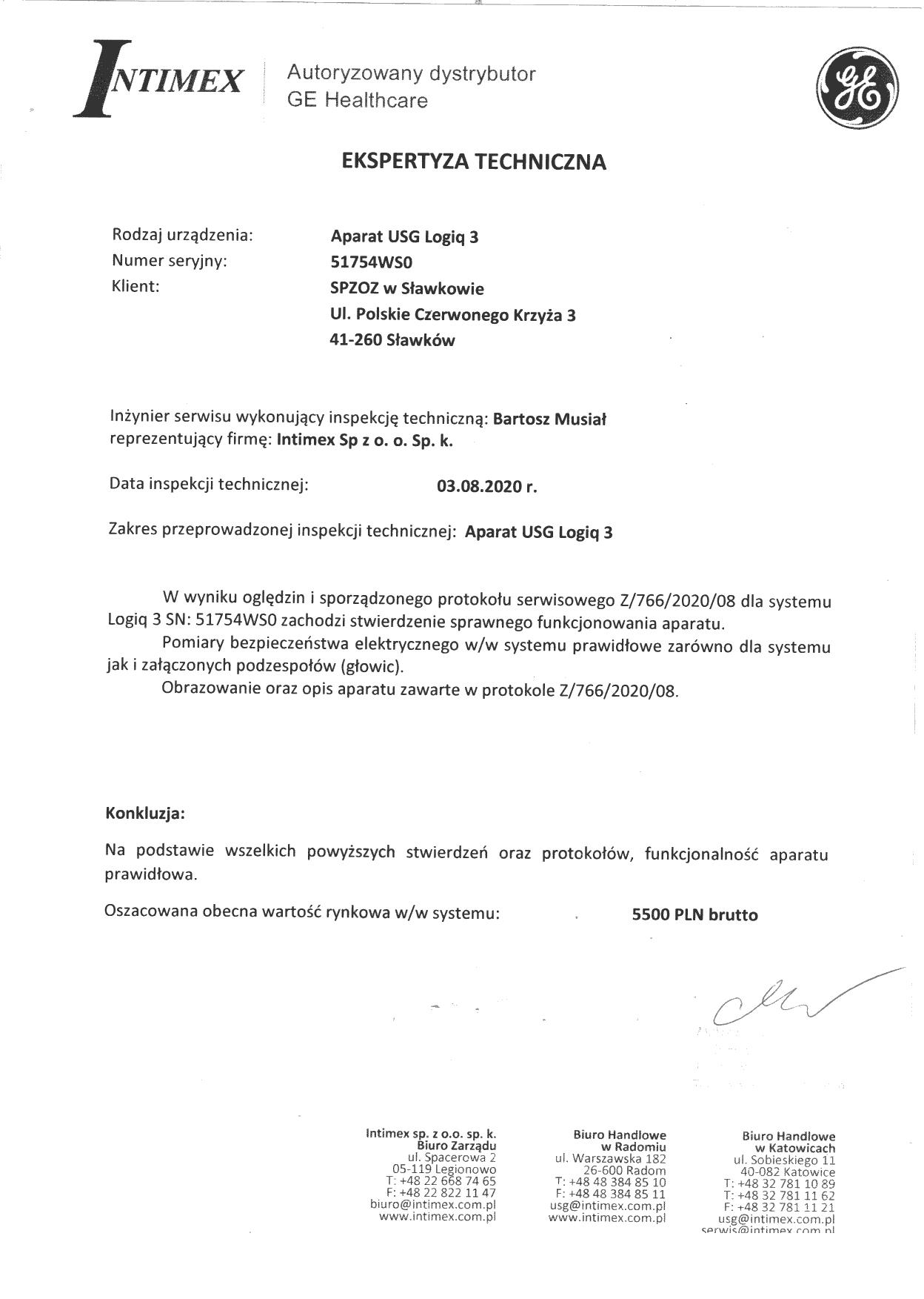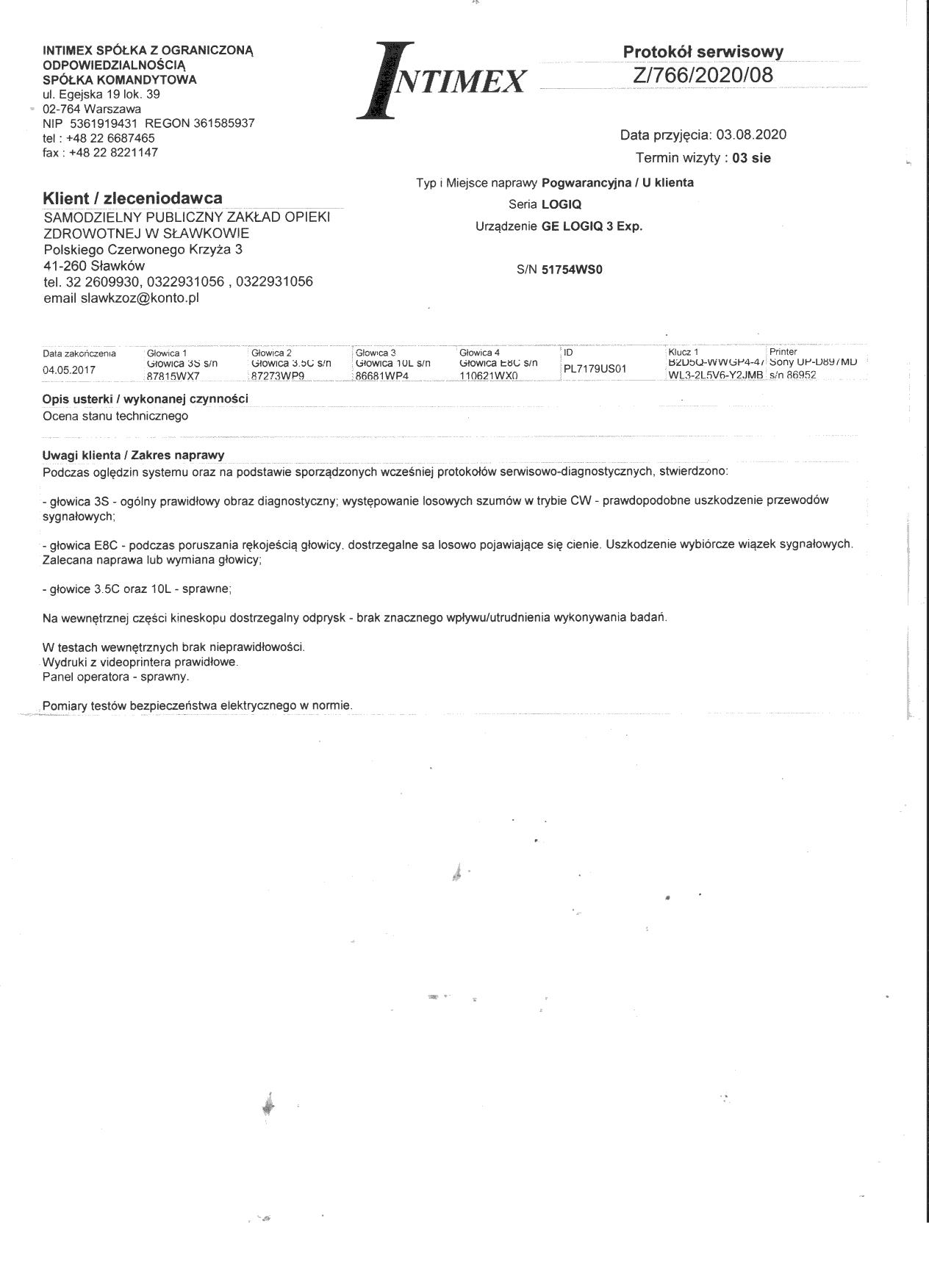 Ogłoszenie o przetargu na sprzedaż używanego aparatu USG Logiq 3 Expert z głowicami i printerem